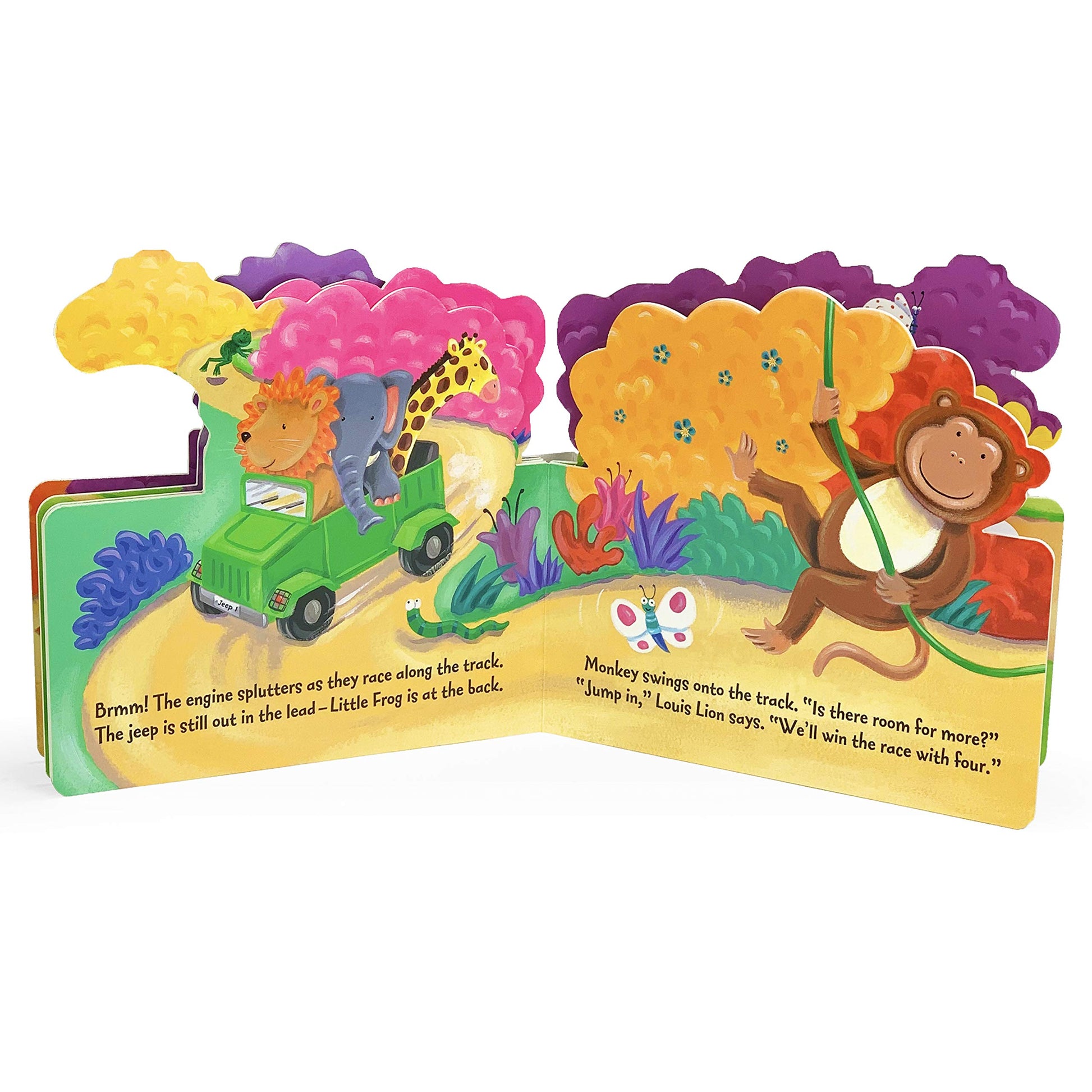 Kiddos will love learning all about the lions, elephants, monkeys, and giraffes as they trek through the wilderness in a big green safari Jeep.