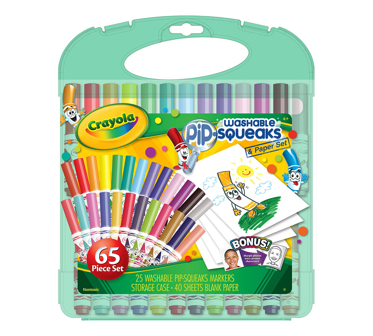 Includes 25 washable Pip-Squeaks markers and 40 sheets of paper in a durable travel case. WASHABLE MARKERS – These mini markers for kids are washable from skin and most washable clothing.