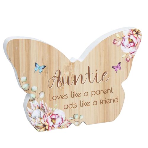 Wooden Butterfly Plaque - Auntie